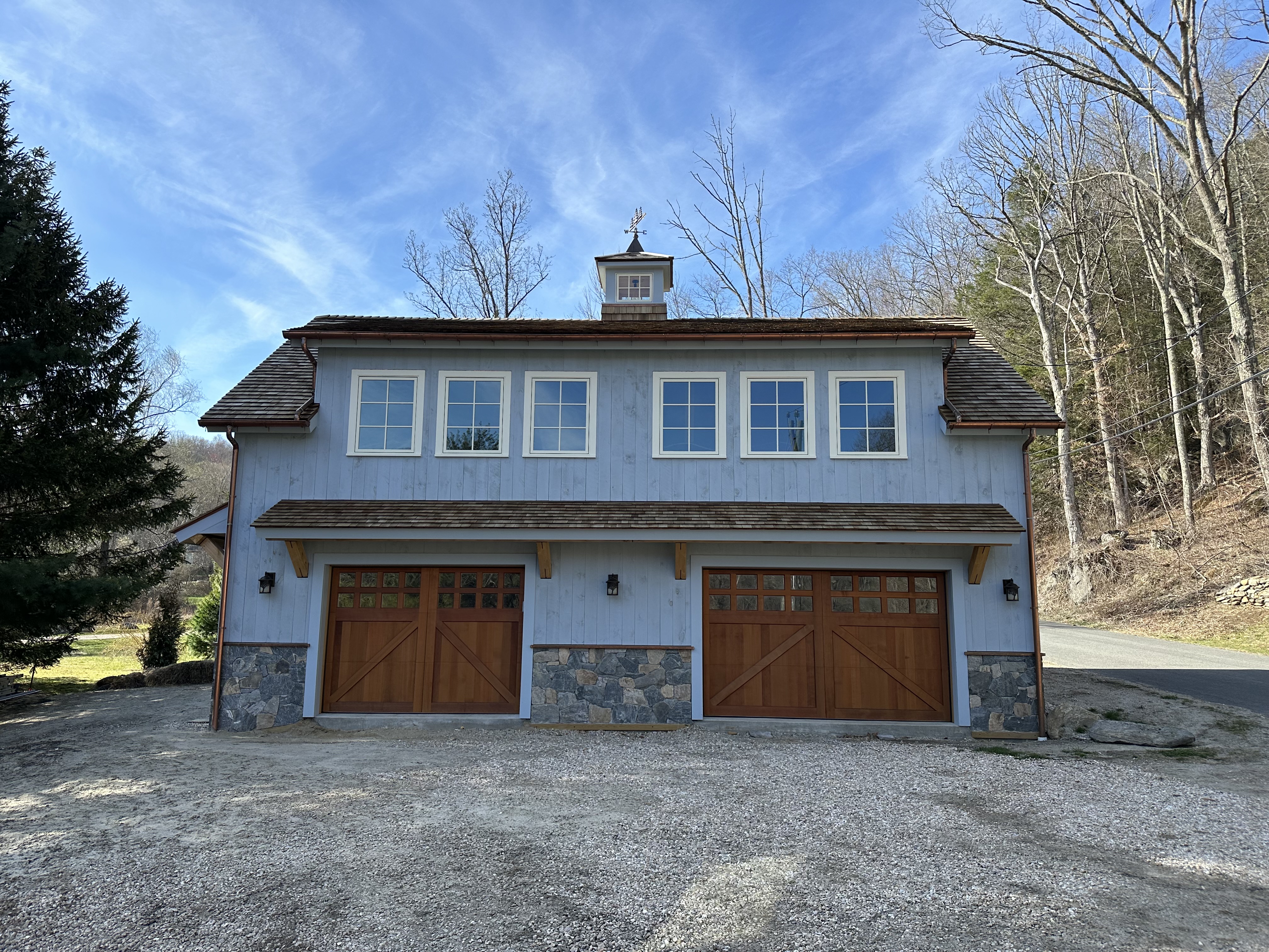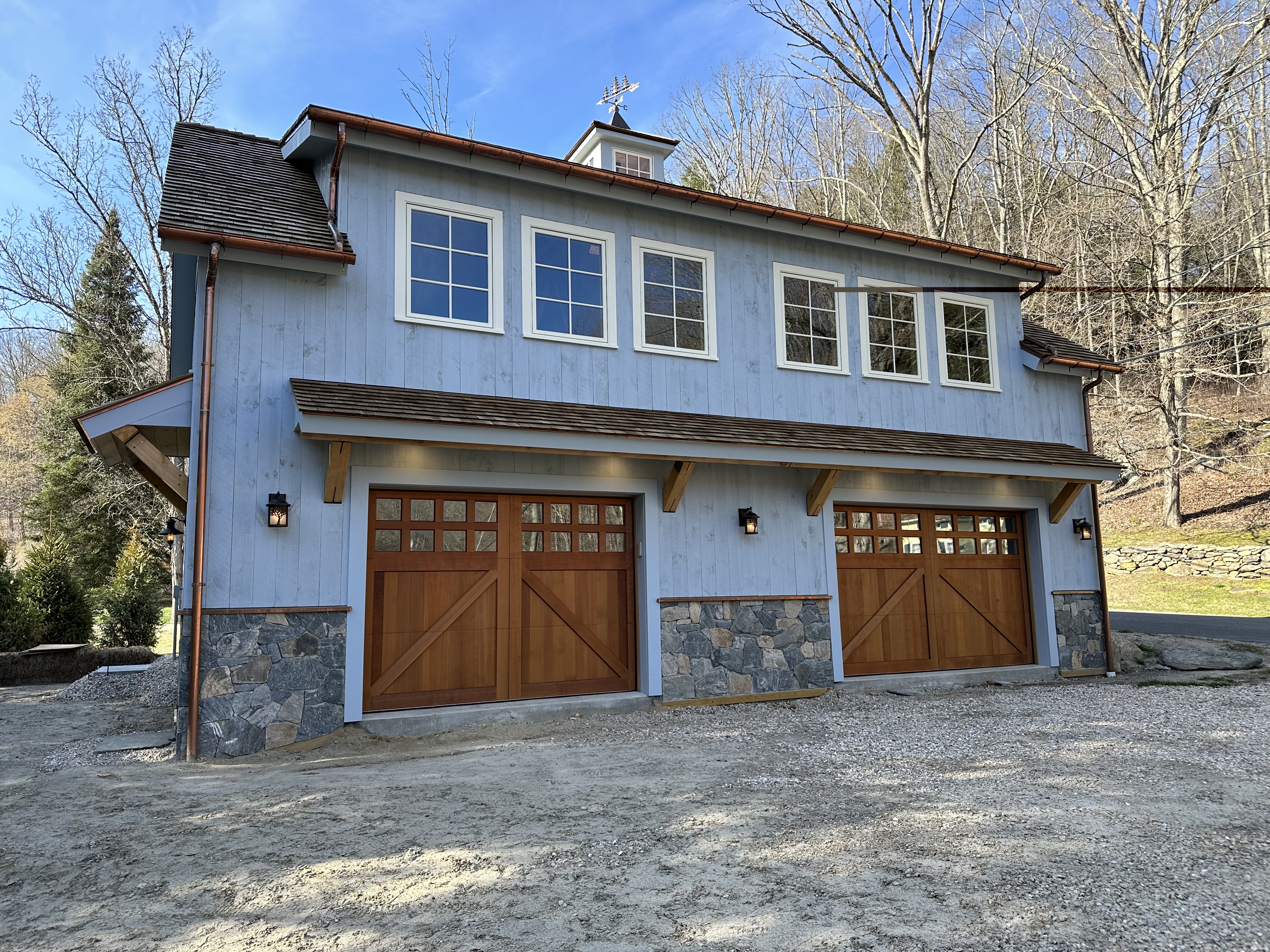 After carefully listening to our clients’ wants and needs, we successfully stayed within zoning regulations to design and build this spectacular carriage house. Measuring 38' x 22', it features a second-floor storage loft. The first floor offers ample space for car storage, a car lift, and a workshop. The entire space is climate-controlled with a state-of-the-art Arctic Heat Pump HVAC system and radiant floor heating embedded in a 6" concrete slab.
